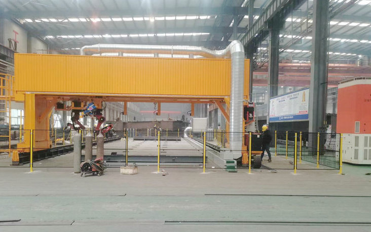 本项目为龙门式机器人焊接,焊接机器人在焊接过程中不仅需要沿轨道滑动,而且机器人焊时机器人手臂可前后移动灵活多变。故焊点位置不固定,产烟尘点多且杂,具有烟尘不易捕捉的特点。解决方案: