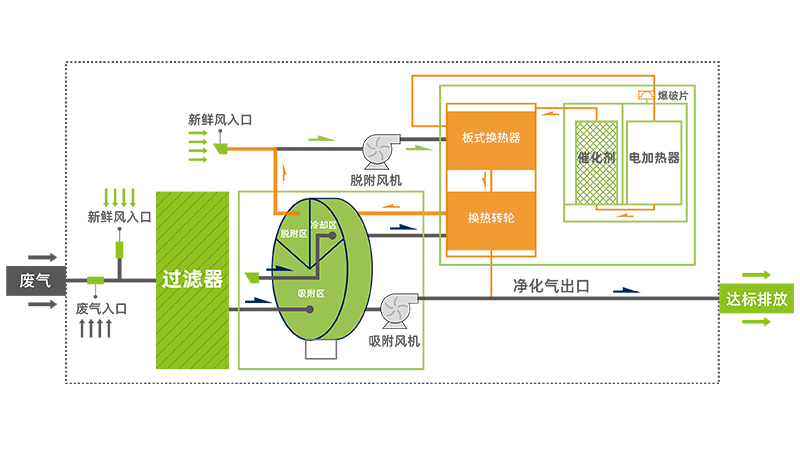 治理达标效果好,安全稳定性能好:净化效率高,转轮寿命5-10年;