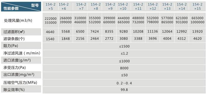 ◆ 低压长袋脉冲袋式除尘器LCDM84系列性能规格 ◆