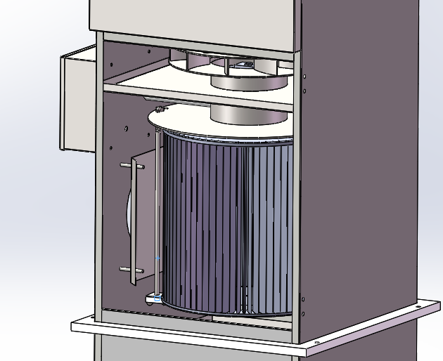 置顶式除尘净化器由箱体、滤筒、外置式储灰箱、风机、清灰装置、控制器等组成,滤芯竖装,利用沉流式原理,便于粉尘沉降;