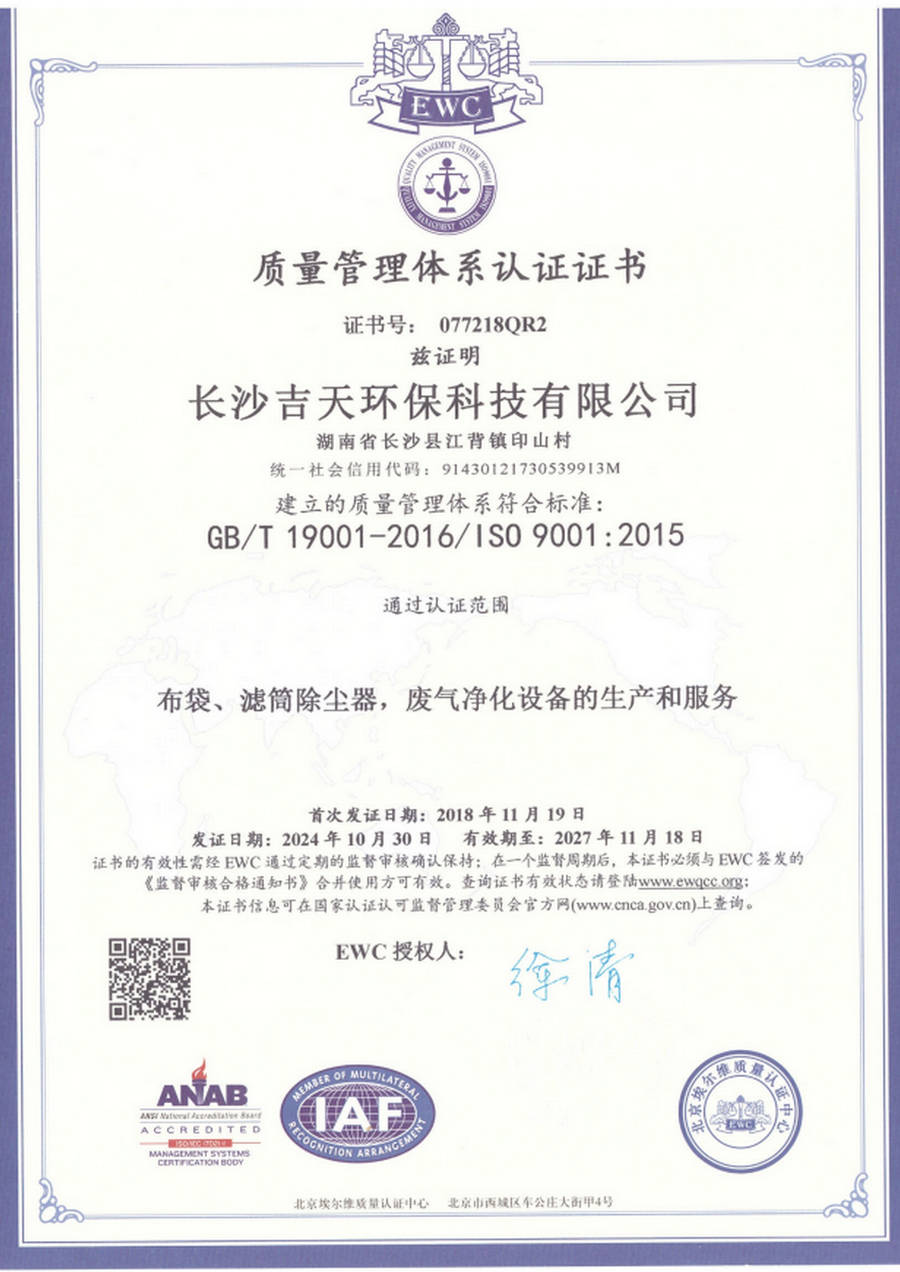 质量管理体系认证证书