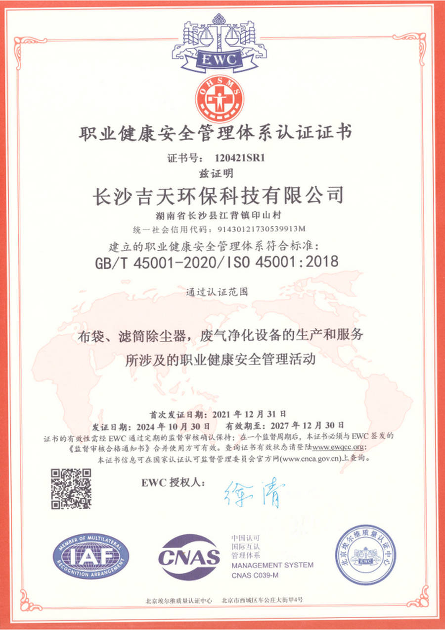 职业健康安全管理体系认证证书