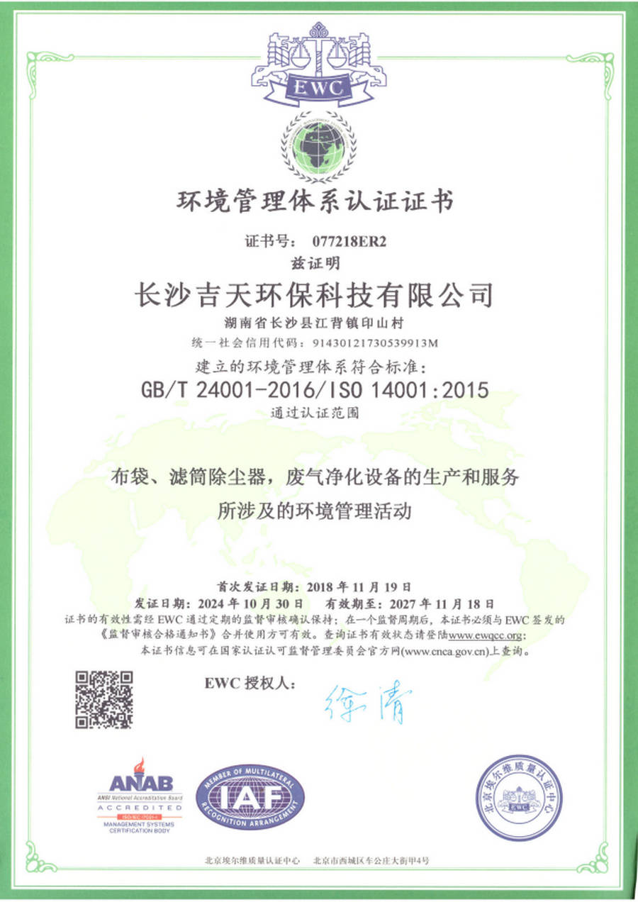 环境管理体系认证证书