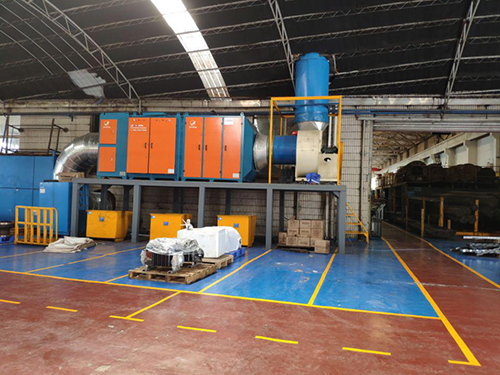 该项选用我公司的三级废气净化器JTFX-40K一台,每台废气净化器配备风机电机功率50KW,风量40000m³/h离心风机1台。