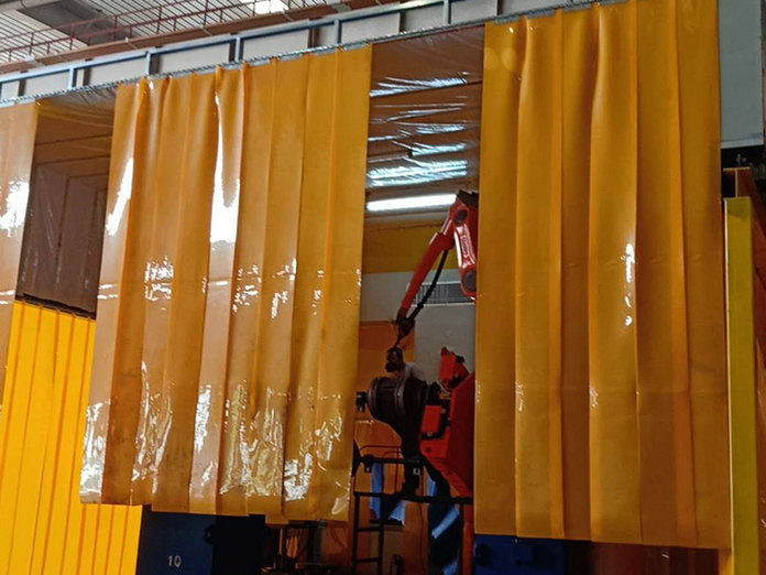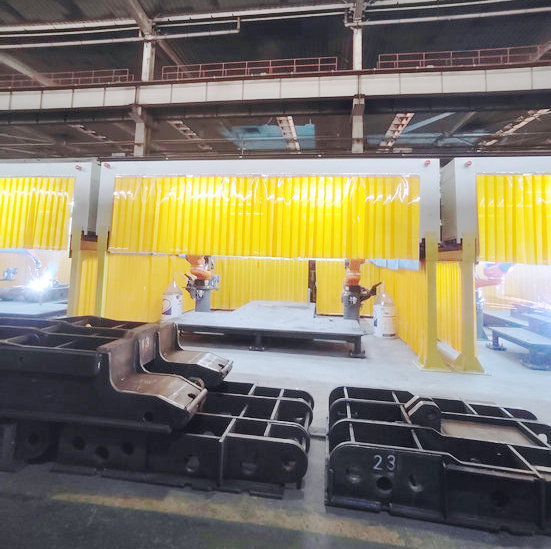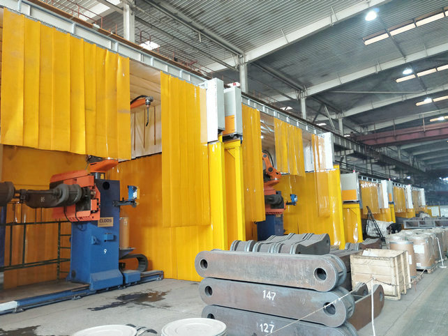 西安重装铜川煤矿机械有限公司(原名铜川煤矿机械厂)的焊接车间有5个机器人焊接工作站做焊接烟尘治理,材质为碳钢板,二氧化碳气体保护焊,焊接工作站有大有小,焊接工作量大。焊接过程的发尘量较大。焊接工件较大,需要行车吊运工件。并且车间桥架管线布局复杂,对风管安装影响大。