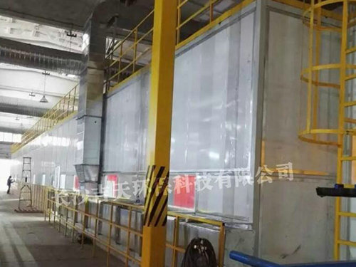 洛阳北方易初车架焊接和打磨除尘项目,手工焊接工位成流水线布局,工位紧凑,机器人焊接工位成单个的焊接工作站;六个打磨工位集中在一处。对于封闭的工作间,还要求夏季送冷风,采用水帘冷风机送风,室外做相应的地下冷却水池。车间较为老旧,风管只能地面支撑。除尘器室外安装,冲天管间距大于30米。冲天管高度15米以上。